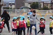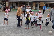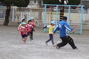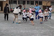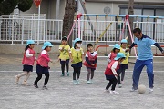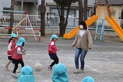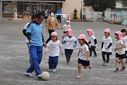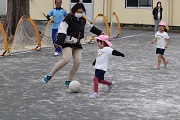 本年度最後のサッカー教室が行われました。園児たちは、元気にボールを追いかけていました。春のころのサッカー教室の比べると、ボールもしっかり蹴ることができるようになりました。サッカーでも成長しています。今日は、園児の相手になってくれた保護者の方もかなり真剣に取り組んでくれました。