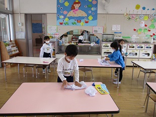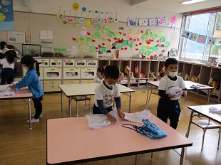 「まん延防止等重点措置」の延長を受け、例年実施しております保育参観の持ち方の変更にご理解いただき感謝いたします。22日に分散型保育参観の計画表を配布しました。第一希望を優先に計画表を作成しましたが、思い通りにならなかった保護者の皆様のご理解に感謝いたします。参加人数を踏まえ三密を考え計画表を作成したことにご理解下さい。参加に際しましては、配布しました健康確認票の提出をお願いいたします。