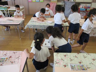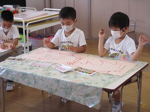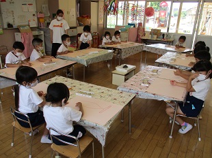 「まん延防止等重点措置」の延長を受け、例年実施しております保育参観の持ち方の変更にご理解いただき感謝いたします。22日に分散型保育参観の計画表を配布しました。第一希望を優先に計画表を作成しましたが、思い通りにならなかった保護者の皆様のご理解に感謝いたします。参加人数を踏まえ三密を考え計画表を作成したことにご理解下さい。参加に際しましては、配布しました健康確認票の提出をお願いいたします。