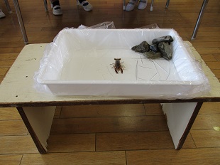 保護者の方にザリガニを持ってきて来ていただき、園で飼育しています。