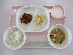 ソイ丼 かきたま汁 バリバリサラダ 牛乳