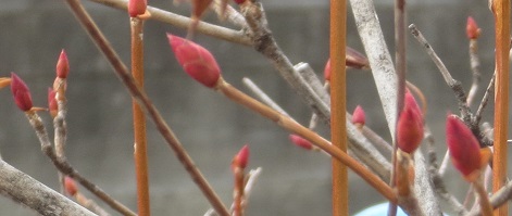 一緒に遊ぶことはできませんが、樹木を見ると、赤いとんがり帽子をかぶって冬に耐えている木々があります。春になると葉を茂らせ花を咲かせるとんがり帽子たち、冬芽にエネルギーを蓄え寒さに耐えて育つこの生命力。園児も同じように・・・。どちらも応援しています。