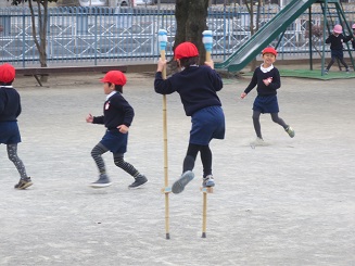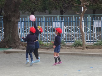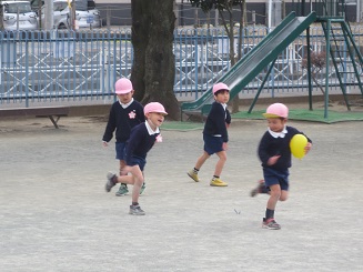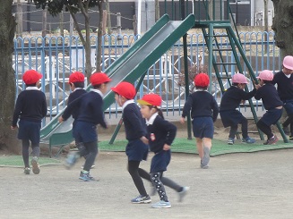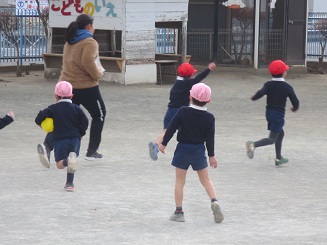 どちらも応援です。 連休明けの寒い日になりましたが、今のところインフルエンザなく、今日も園庭で元気に遊ぶ園児たちです。