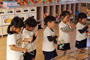 30日(土)の生活発表会に向けて、合奏の練習を始めています。ぱんだ組、ばら組とも楽器のパートが決まりかけています。今は試し練習ですが、少しづつ音があってきています。本番に向けて園児たちは頑張っています。