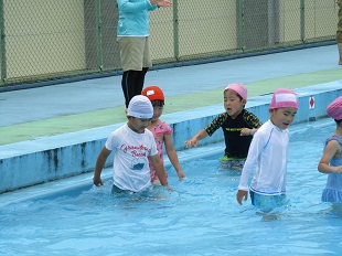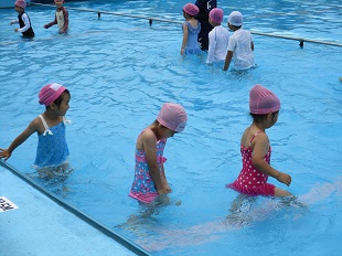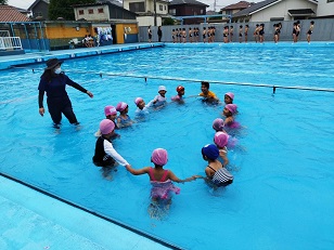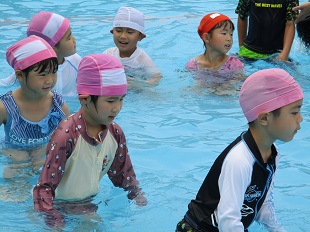 気温が心配でしたが、小学校のプールに入ることができました。